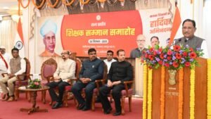 समारोह की अध्यक्षता कर रहे मुख्यमंत्री श्री विष्णु देव साय ने कहा कि शिक्षक ही सच्चे राष्ट्र निर्माता होते हैं। वे देश को ऐसे राष्ट्रभक्त नागरिक देते हैं, जो आगे चलकर समाज और राष्ट्र की उन्नति में योगदान देते हैं। जिस प्रकार दीपक स्वयं जलकर दूसरों को प्रकाश देता है, उसी प्रकार शिक्षक भी अनेक कठिनाइयों के बावजूद ज्ञान का उजाला फैलाते हैं। उन्होंने कहा कि छत्तीसगढ़ राज्य अपनी स्थापना के 25 वर्ष पूरे कर रहा है और इस रजत जयंती वर्ष में प्रदेश ने हर क्षेत्र में उल्लेखनीय प्रगति की है। शिक्षा विकास का मूलमंत्र है और इसके बिना जीवन अधूरा है। पिछले वर्षों में शिक्षा के क्षेत्र में भी व्यापक विस्तार हुआ है। आज प्रदेश में 20 से अधिक विश्वविद्यालय, 15 से ज्यादा मेडिकल कॉलेज और राष्ट्रीय ख्याति प्राप्त संस्थान जैसे आईआईटी, आईआईएम, एम्स तथा लॉ विश्वविद्यालय स्थापित हैं।