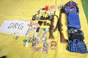 एक इसांस रायफल, एक 303 रायफल, कारतूस, रेडियो व भारी मात्रा में दैनिक उपयोग की सामग्री बरामद